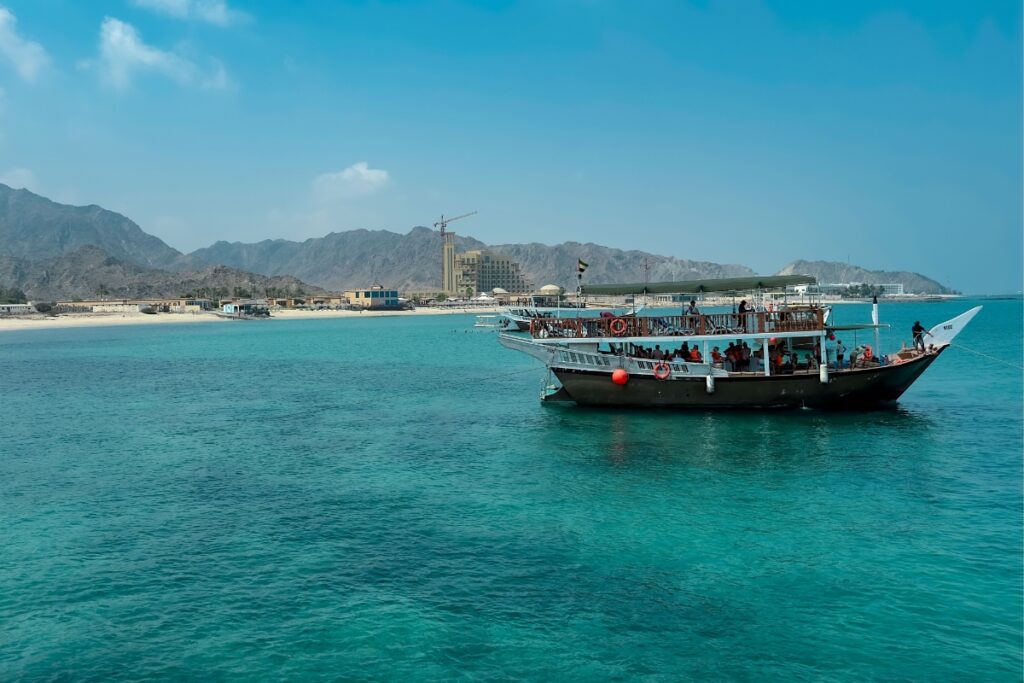If your idea of the best road trips from Dubai includes sea views, make your way to Fujairah on the east coast. The drive itself is scenic, passing rocky mountains before opening up to the Gulf of Oman.