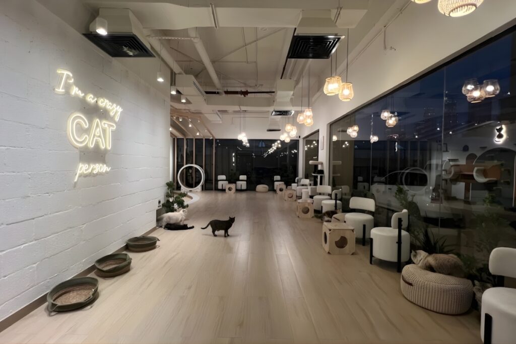 Located in Al Barsha, the café provides a spacious indoor lounge where the resident cats can roam freely.