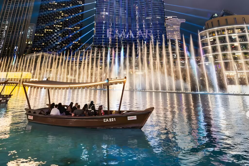 The fountain is visible from multiple spots around The Dubai Mall and Souk Al Bahar, allowing families to view the shows from different angles. It is especially popular for evening visits when the combination of water, lights, and music creates a magical environment.