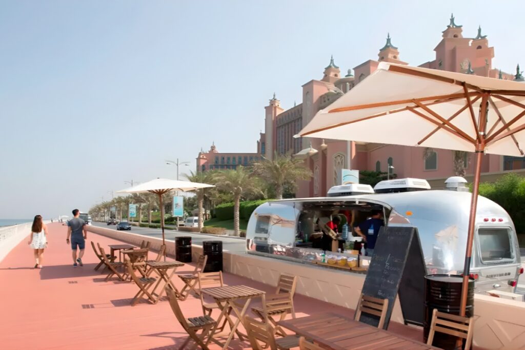 Stretching along the outer crescent, Palm Jumeirah Boardwalk provides a scenic and relaxed setting for families. The wide pathway makes it ideal for walking or bike rides.